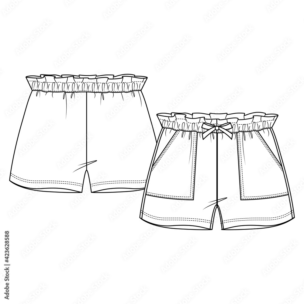 Girls Short Fashion Flat Sketch Template Technical Fashion Illustration Paperbag Elastic Waist Front Bow And Apply Pocket Baby Canvas Print Ba Josee